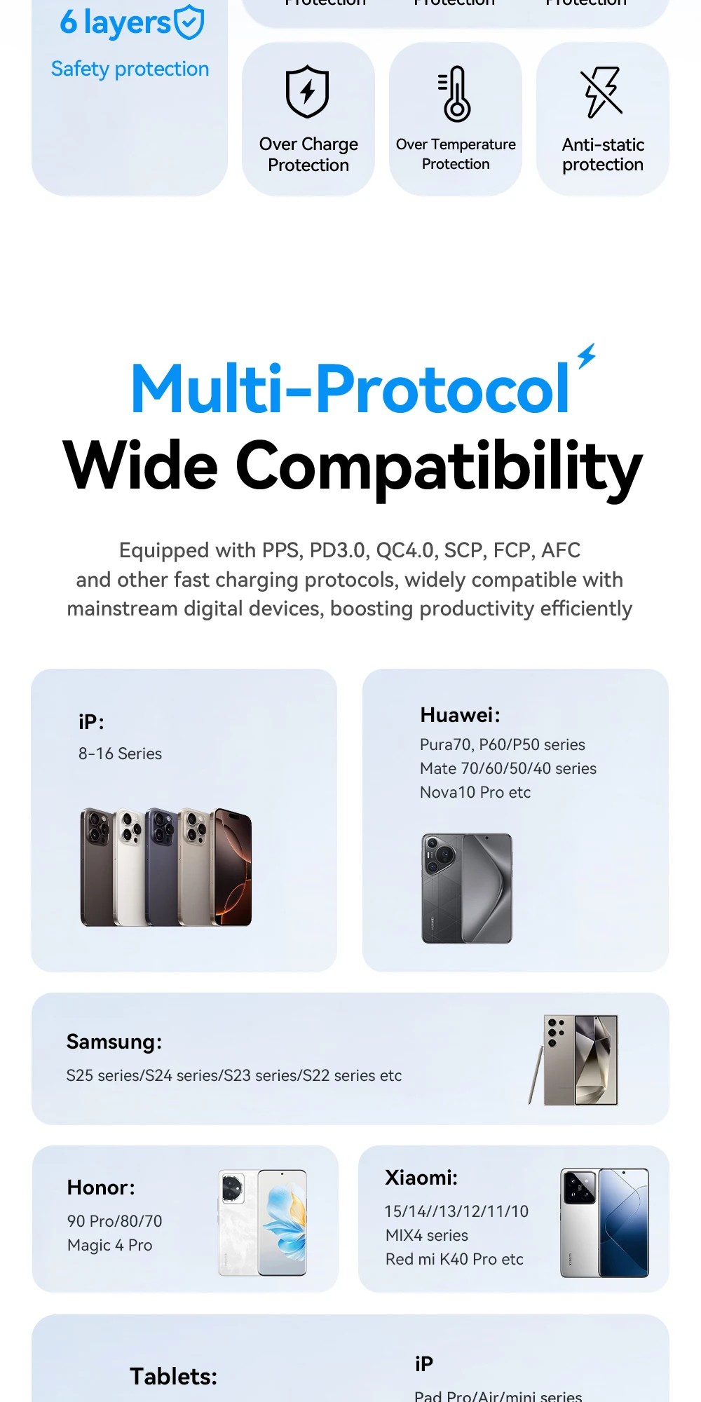 ADVANCED GaN TECHNOLOGY: Utilizes Gallium Nitride (GaN) chips to provide higher efficiency and cooler operation in a compact size, offering superior reliability compared to traditional silicon chargers.