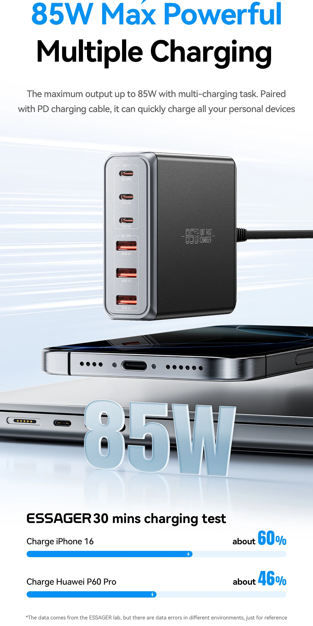 85W HIGH-SPEED OUTPUT: Delivers robust power capable of fast-charging laptops, tablets, and smartphones, ensuring your devices are ready to go when you are—perfect for productivity.