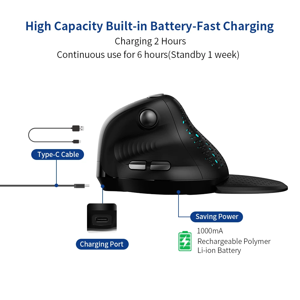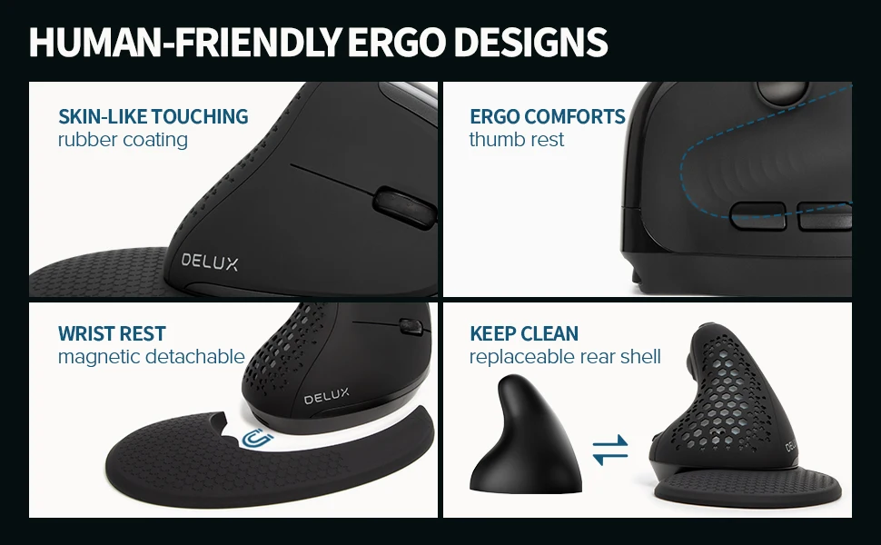 TRUE ERGONOMIC VERTICAL GRIP – Designed to place your hand in a natural “handshake” position, reducing muscle strain and wrist pressure compared to traditional flat mice. Includes a detachable magnetic wrist rest for customized comfort during long work sessions.