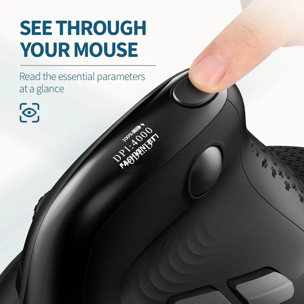 OLED DISPLAY & CUSTOM PRECISION – Built-in HD OLED screen allows you to instantly view battery status, connection mode, and DPI settings. Adjustable precision range (600–4000 DPI) ensures smooth tracking on various surfaces.