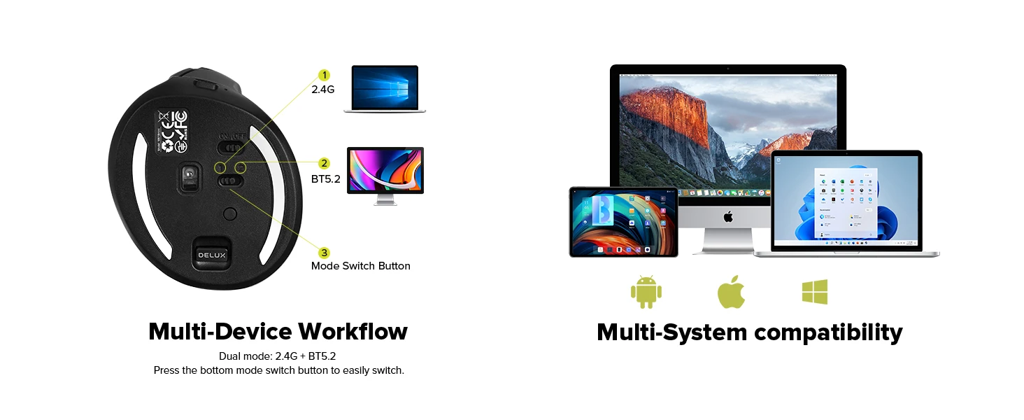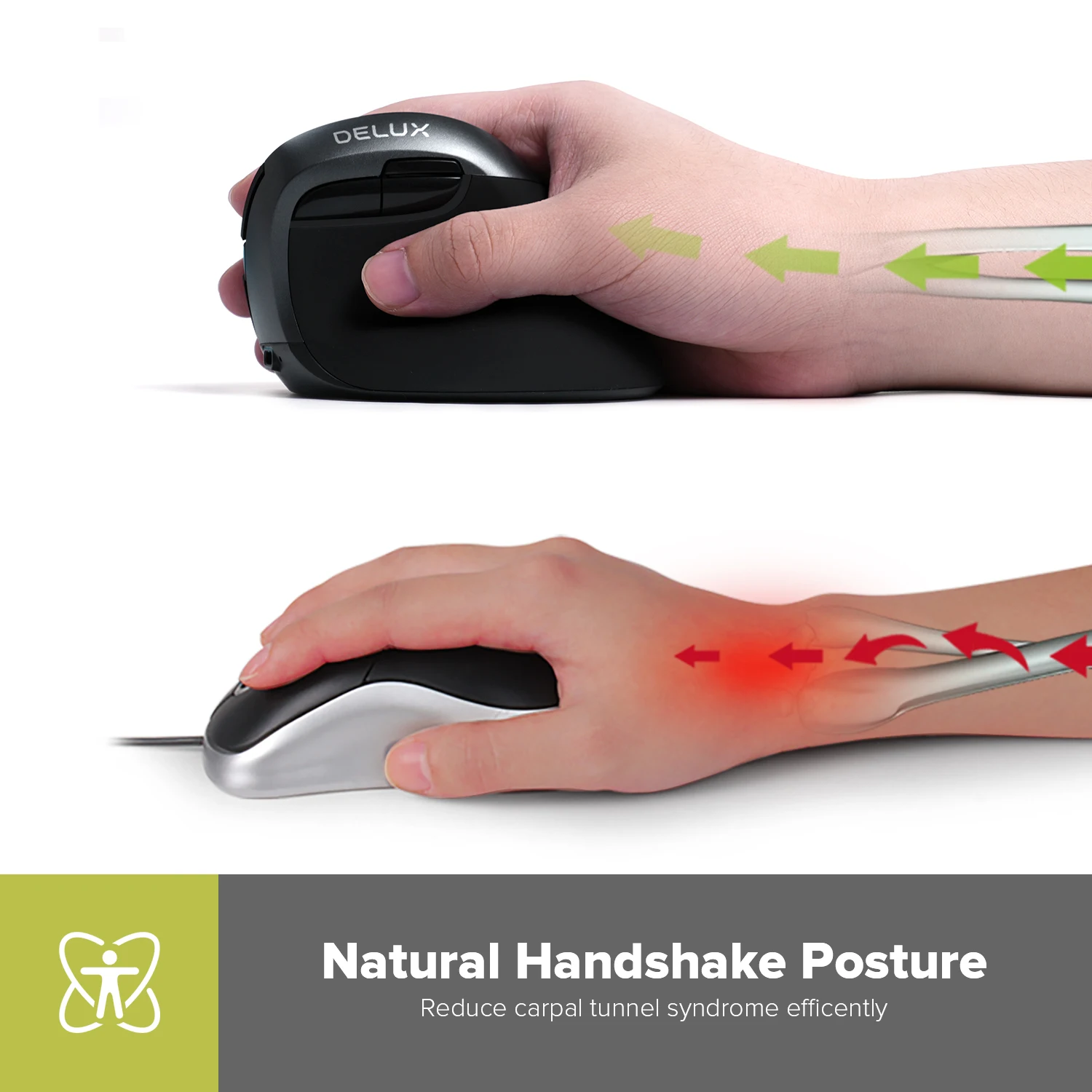 • ERGONOMIC “HANDSHAKE” DESIGN Say goodbye to twisted forearms. The vertical shape places your hand in a natural handshake position, significantly reducing muscle strain and wrist pressure during long workdays.