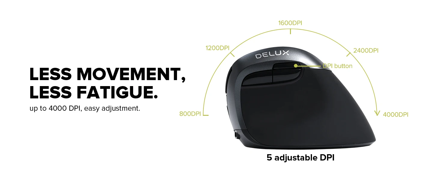 • ADJUSTABLE HIGH PRECISION Tailor your cursor speed to your task. Toggle between 800, 1200, 1600, 2400, and 4000 DPI settings for precise graphic design work or fast document scrolling.