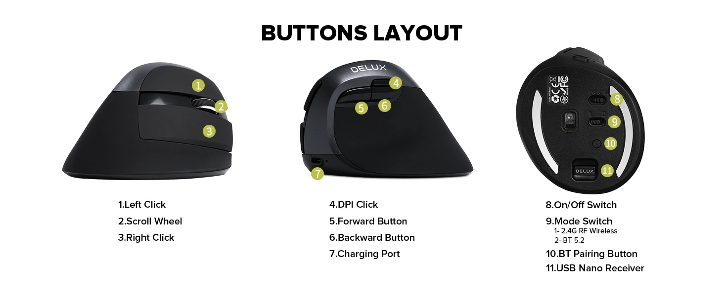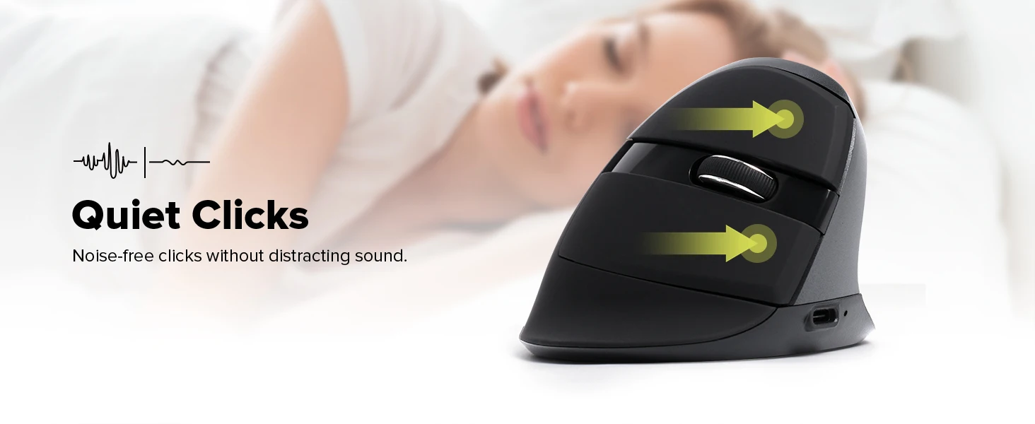 The Open-Plan Office You’re working on a deadline in a quiet shared office. With the silent click feature, you breeze through tasks without annoying your deskmates with constant clicking sounds. The vertical grip keeps your arm relaxed, even at 4 PM.
